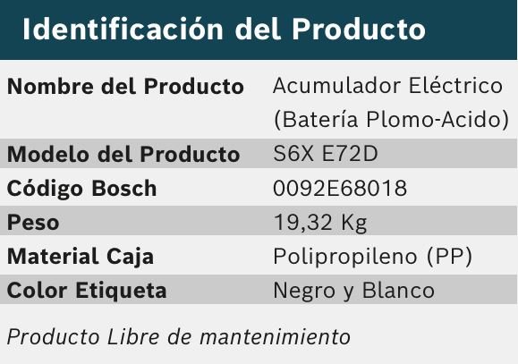 BATERIA S6 72 AMP – START/STOP – AUTO ELECTRICO